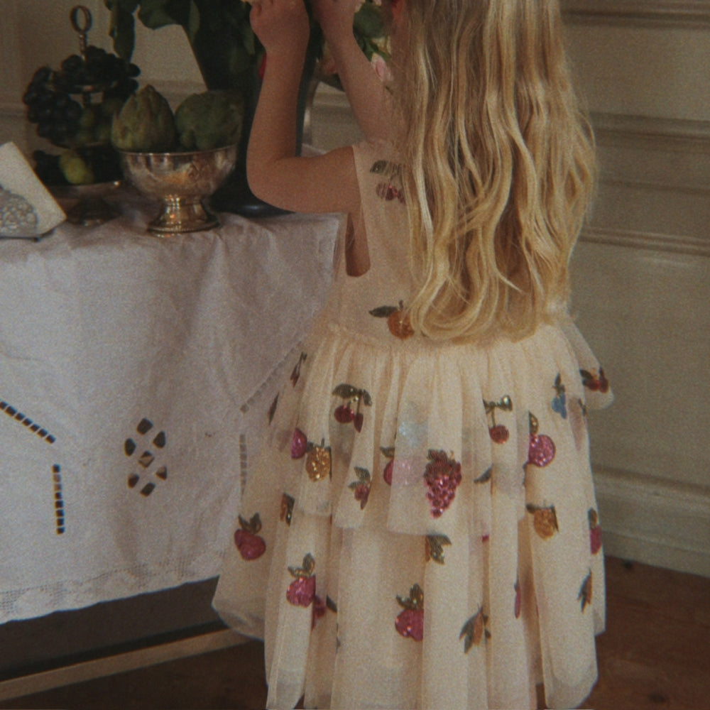 La robe pour filles Yvonne de Konges Slojd est une option étincelante, inspirée des contes de fées, pour les petites fées qui aiment danser et virevolter.
