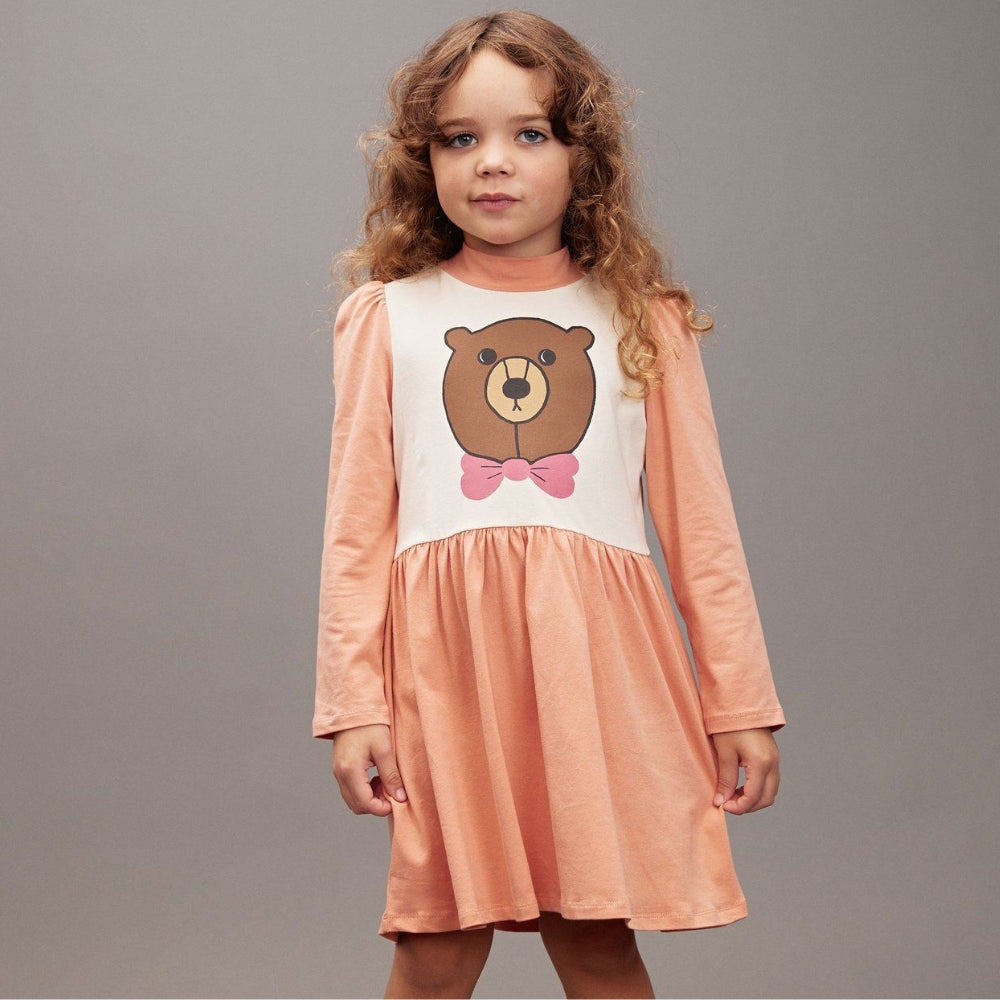 Elle est ornée sur le devant d'un grand motif représentant un ourson avec un nœud papillon rose, ce qui ajoute au charme de l'ensemble et fait de cette robe un article de garde-robe favori.