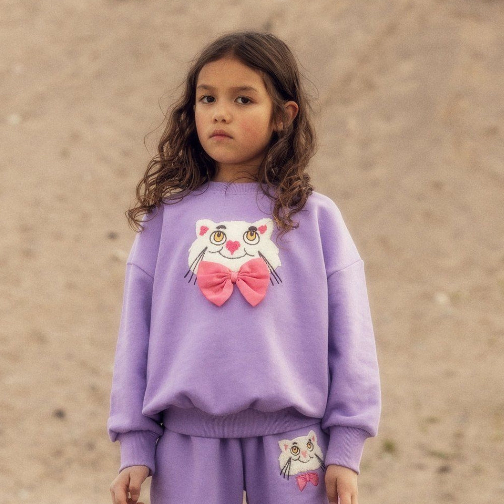 Chat avec nœud papillon Sweat-shirt pour enfants violet de Mini Rodini.