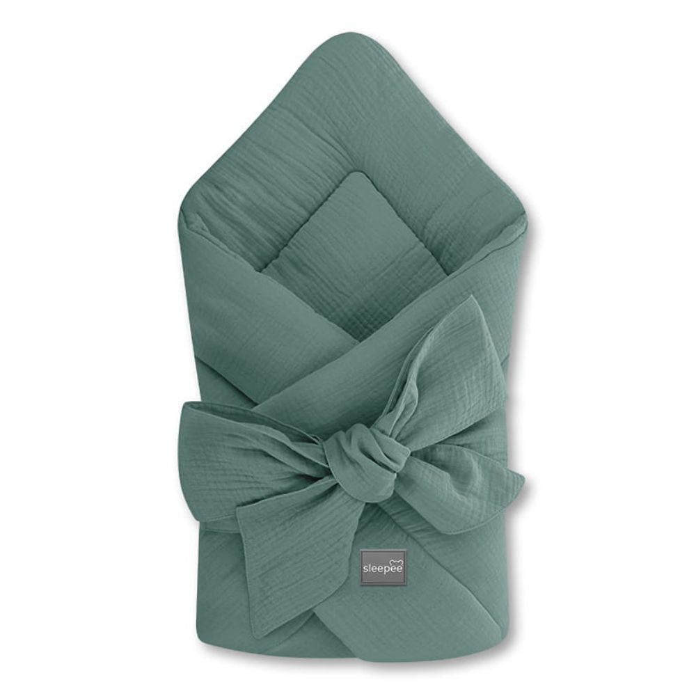Le Ocean green muslin baby horn de Sleepee est un must pour tout équipement de bébé et idéal comme cadeau de naissance.