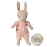 Le coffret comprend une petite balle et un lapin tout doux de taille microscopique.
