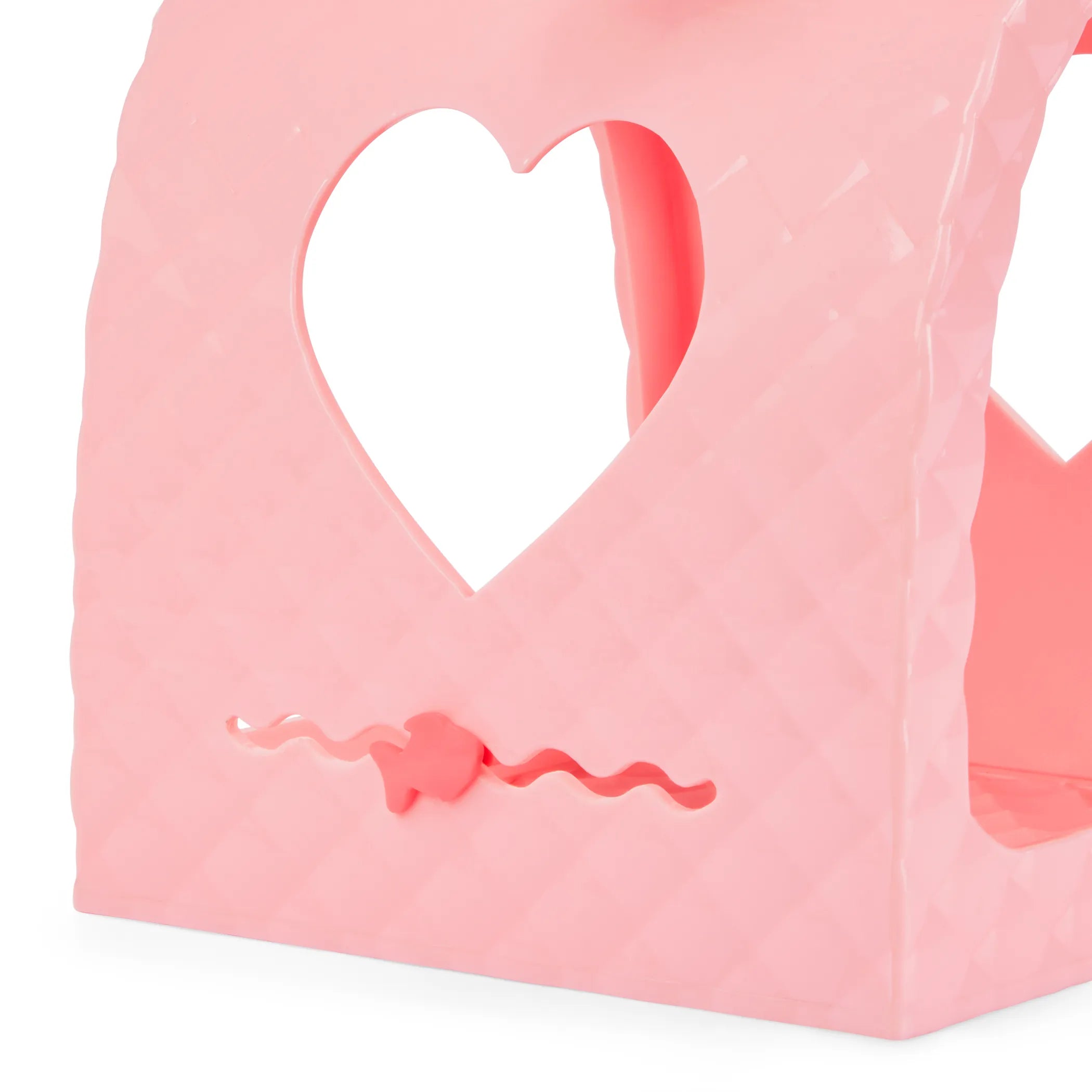 La maison rose ajourée en forme de cœur, le griffoir et le lit moelleux peuvent être combinés pour former une tour à deux étages, faisant du chaton avec sa maison le centre du jeu et de la narration.
