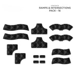 L'ensemble Connetix de 16 pièces Roads, Ramps and Intersections présente des formes uniques de tuiles magnétiques inspirées des routes, notamment des quarts de cercle, des courbes, des intersections et des rampes longues et courtes, le tout dans une teinte noire élégante.