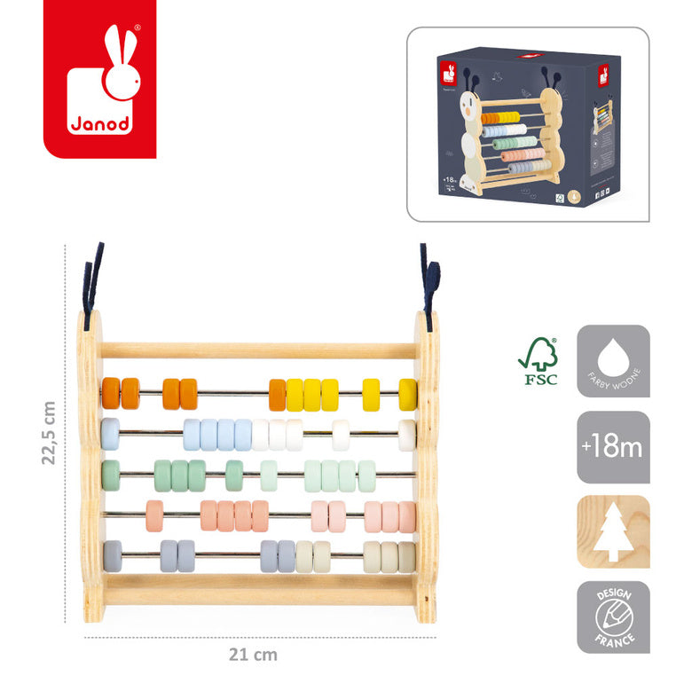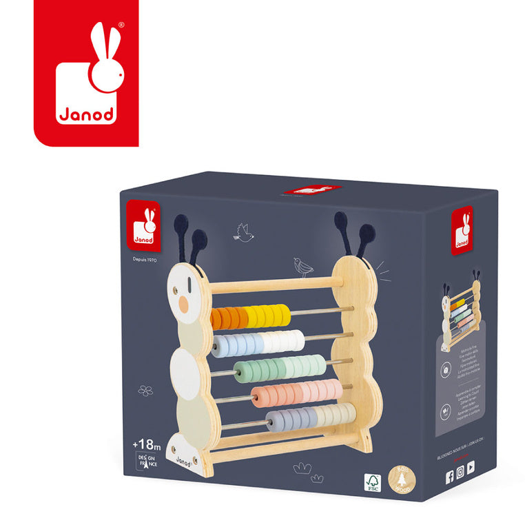 La roue à compter de Janod de la série Sweet Cocoon est conçue pour les enfants qui aiment explorer le monde en jouant.