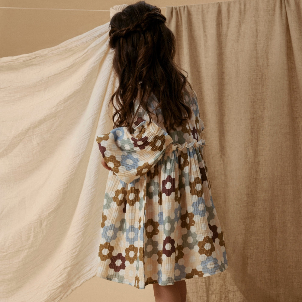 La robe pour fille Lil' Atelier a été cousue à partir de coton 100 % biologique, ce qui garantit la respirabilité et la sécurité, même pour les peaux les plus sensibles.