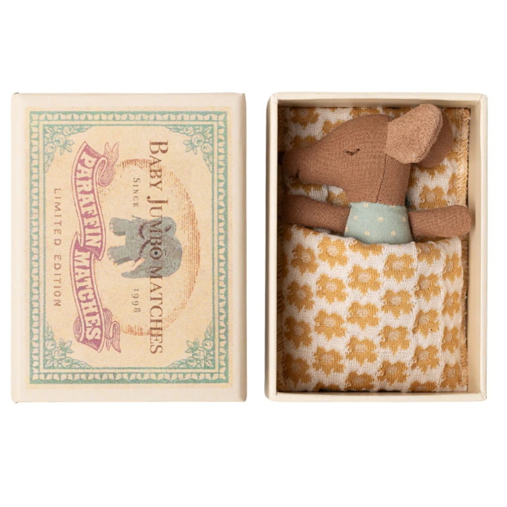 Maileg Souris endormie dans une boîte d'allumettes Bleu