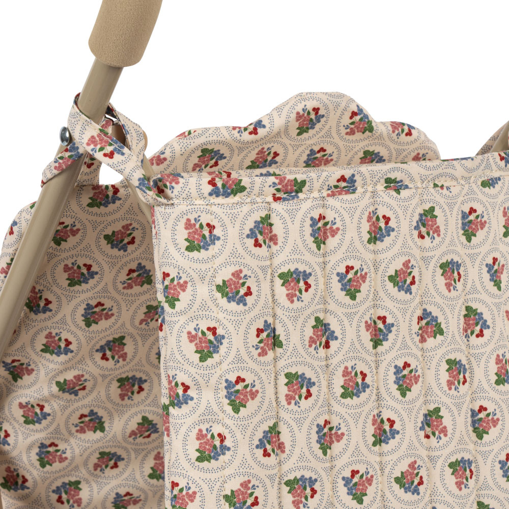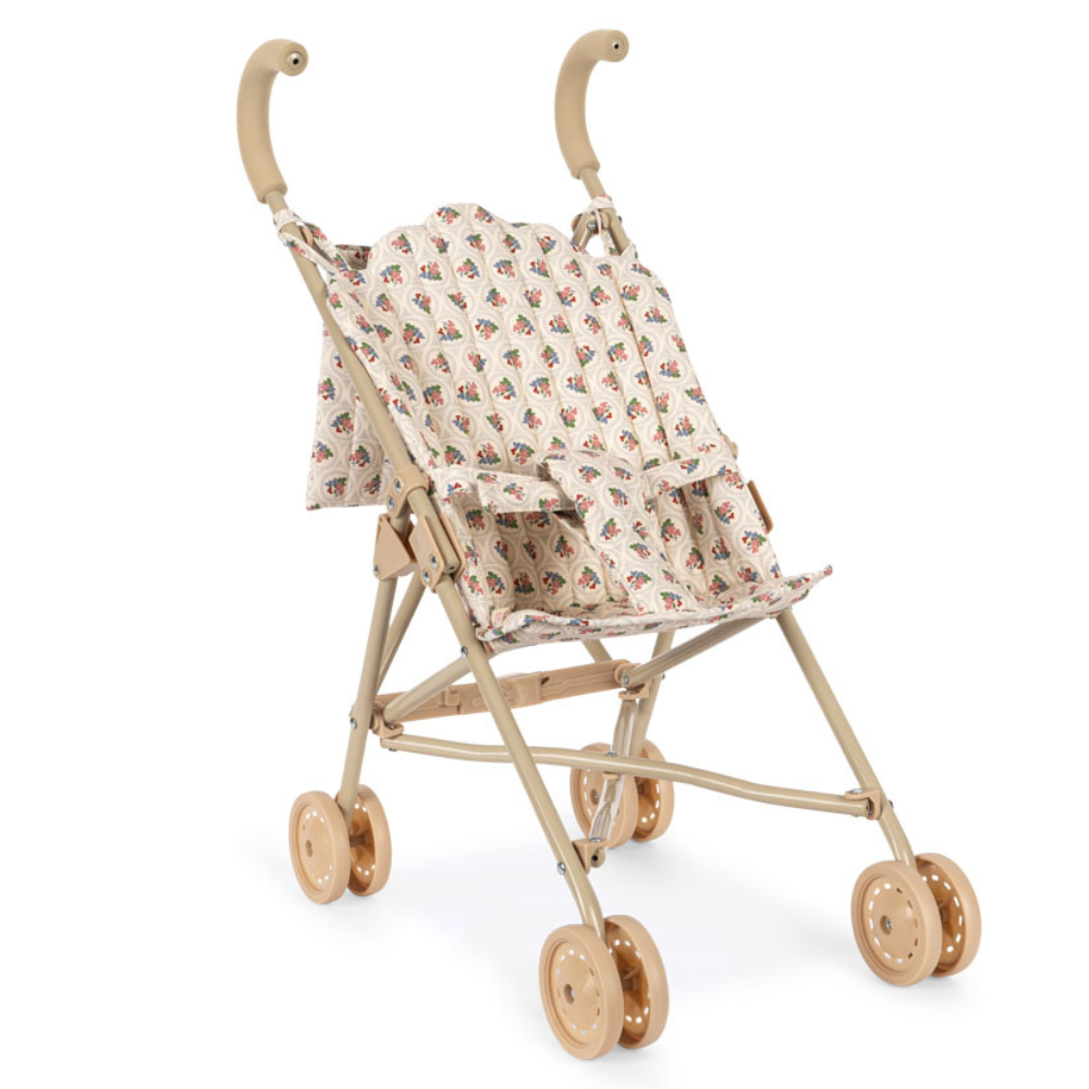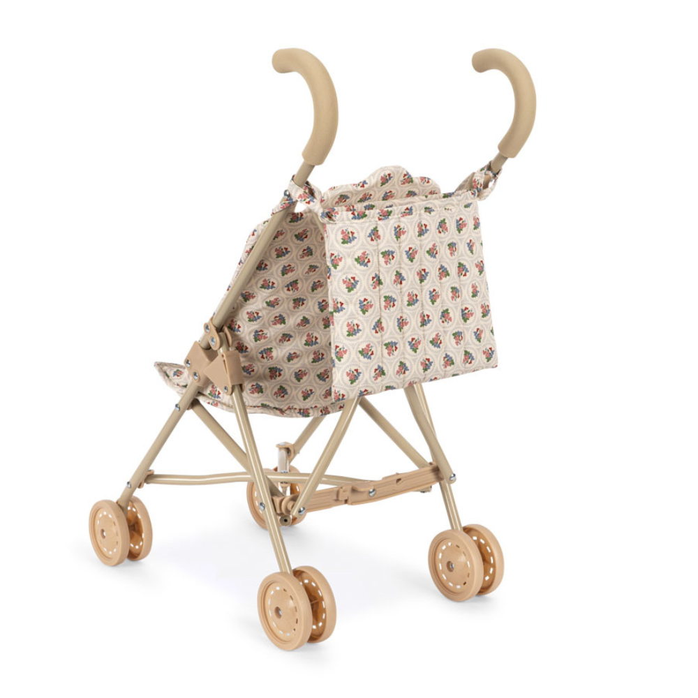 Le landau de poupée de Konges Slojd associe une armature métallique robuste à des textiles doux pour créer un accessoire pratique et élégant pour les années à venir.