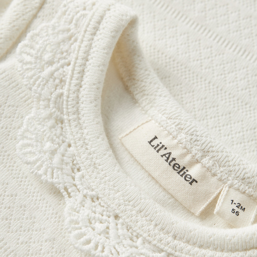 Les bodys pour bébés de Lil' Atelier allient confort, qualité et style intemporel. Le délicat motif côtelé dans les tons blancs leur confère un charme subtil, tandis que la taille élastiquée assure une totale liberté de mouvement pour les jeux et la détente au quotidien.
