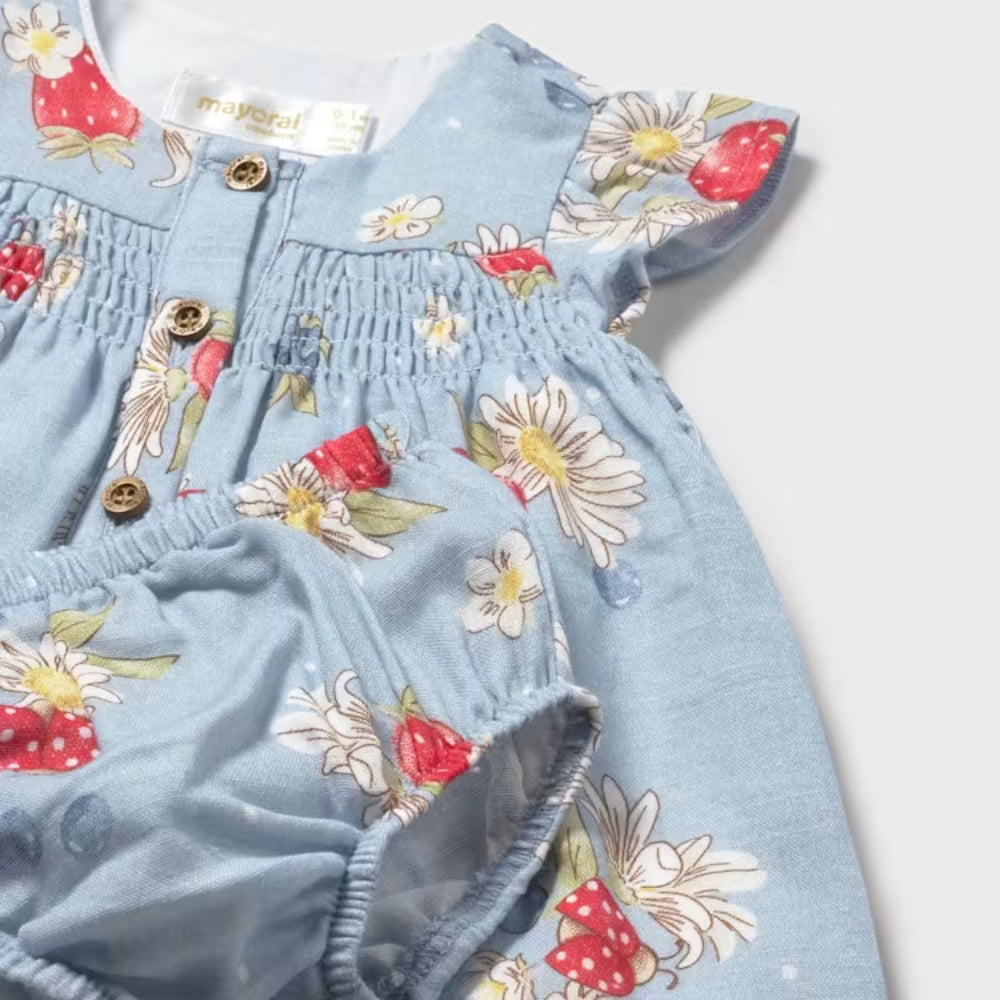 Cette robe bleue vaporeuse de Mayoral est adorable pour un nouveau-né et lui assure un confort tout au long de la journée.