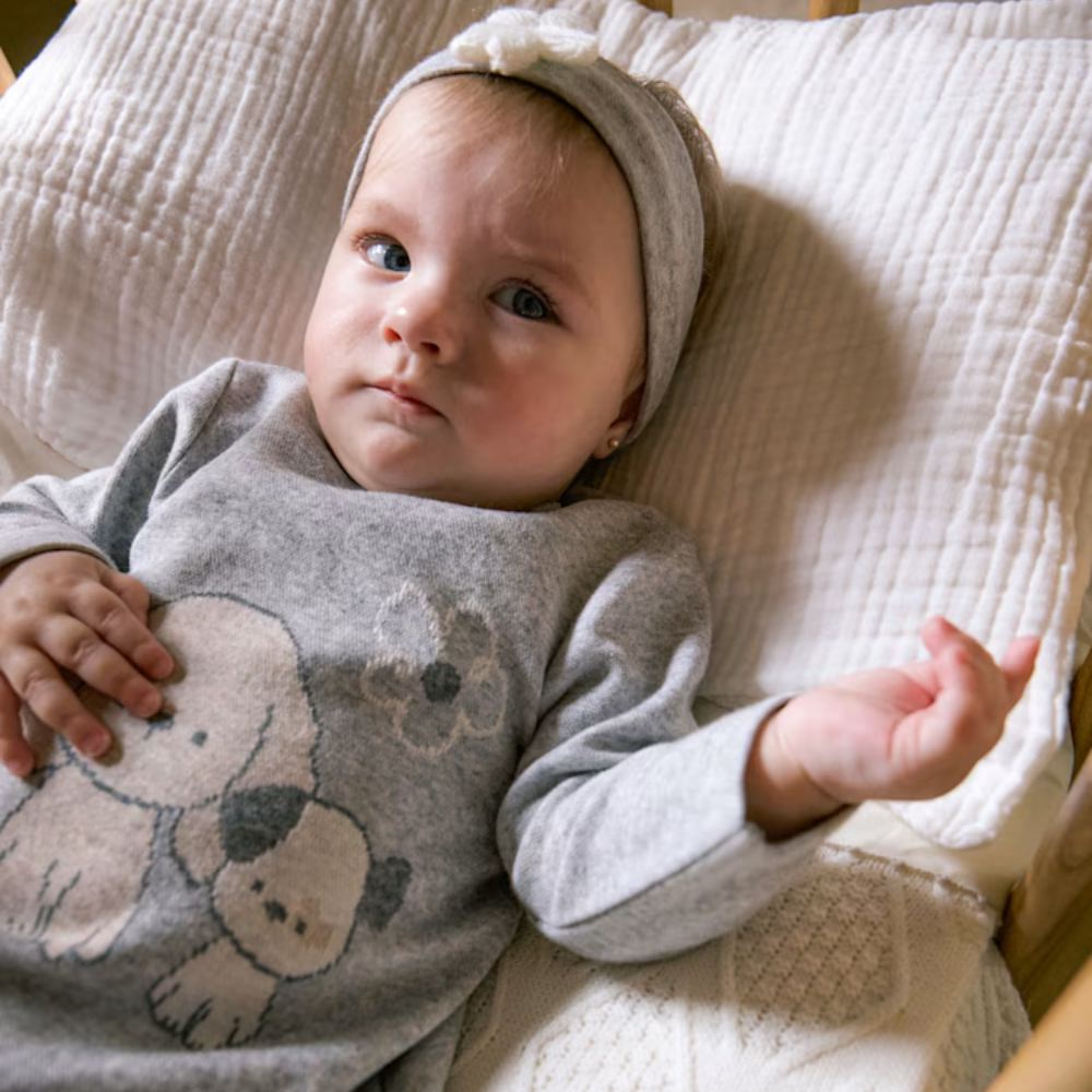 Si vous cherchez un cadeau à offrir dès le premier jour, la robe à bandeau de Mayoral conviendra parfaitement : elle est douce sur la peau, élégante et prête à être portée dès sa sortie de la boîte.