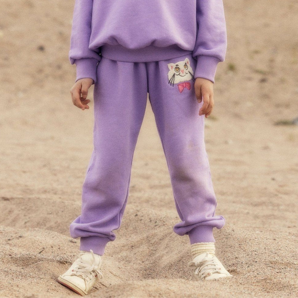 Chat avec nœud papillon Pantalon de survêtement violet pour enfants de Mini Rodini.