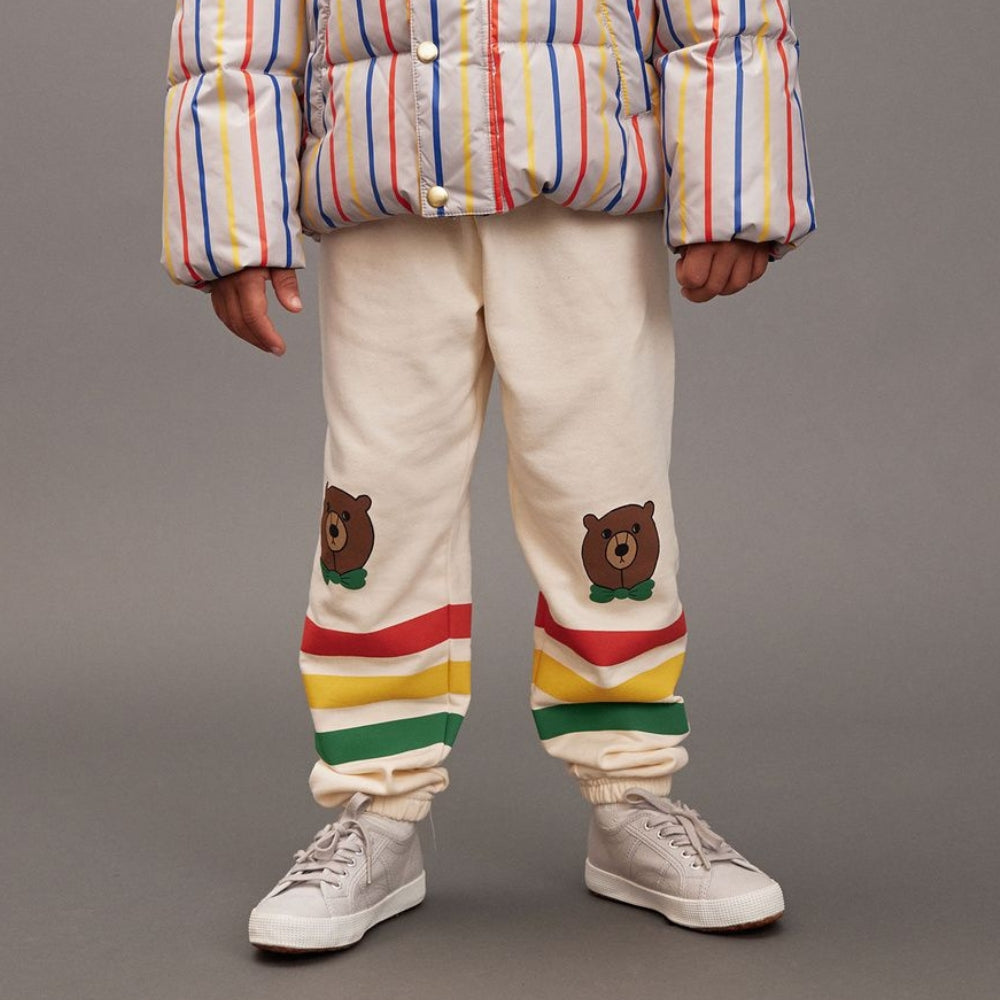 Pantalon de survêtement pour enfants Bear stripe ecru de Mini Rodini.