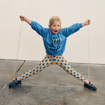 Le motif géométrique distinctif dans les tons noir et beige sur un fond clair ajoute à leur look original, typique du style créatif de la marque Bobo Choses.