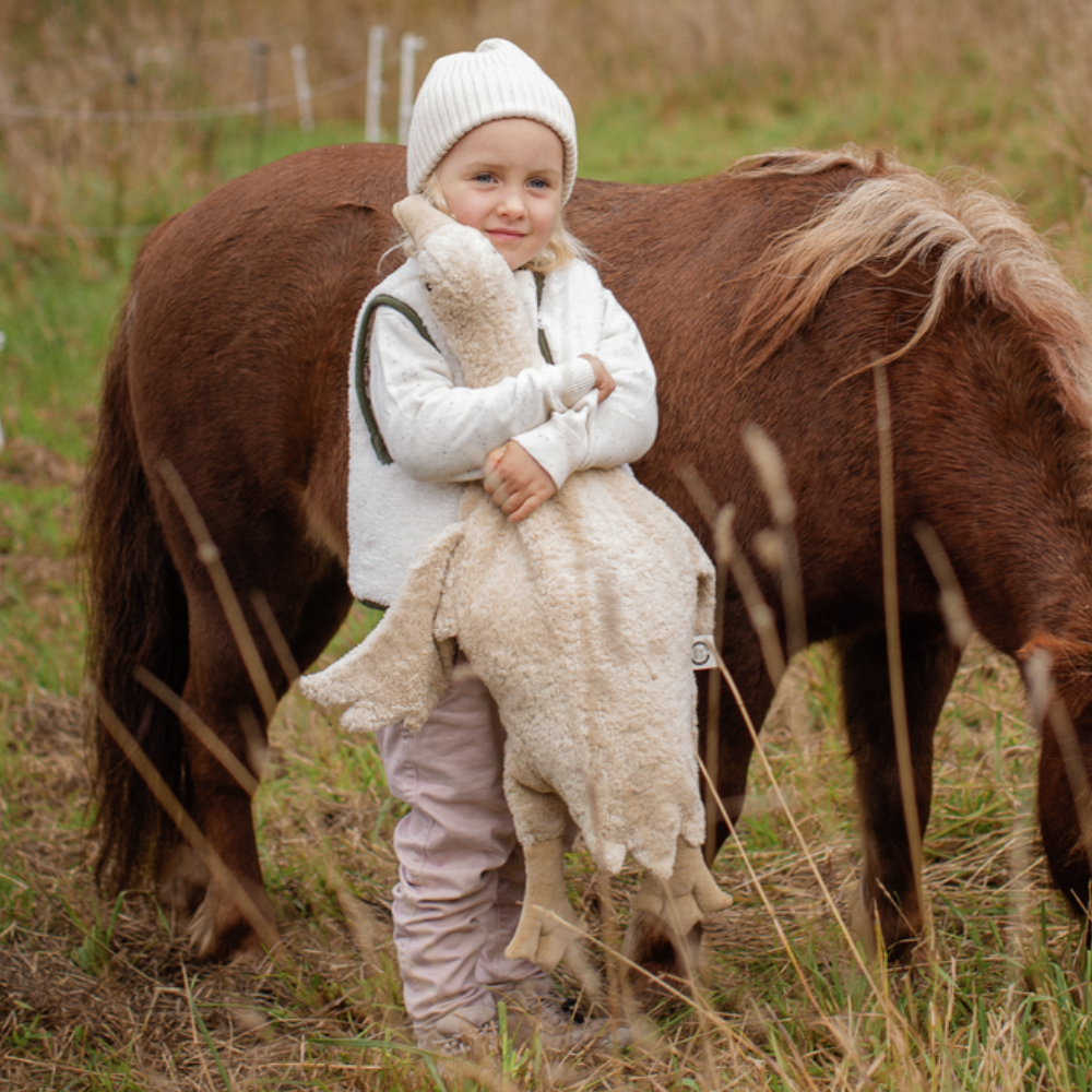 Senger Naturwelt crée ses jouets à la main à partir de coton biologique certifié GOTS et les remplit de pure laine de mouton.