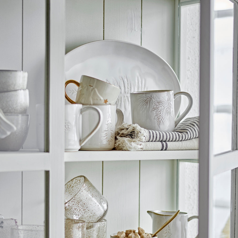 Les tons clairs et le délicat motif en relief inspiré de la nature hivernale lui confèrent une touche particulière.