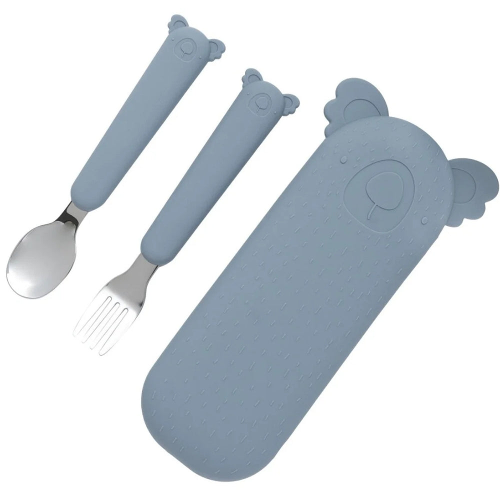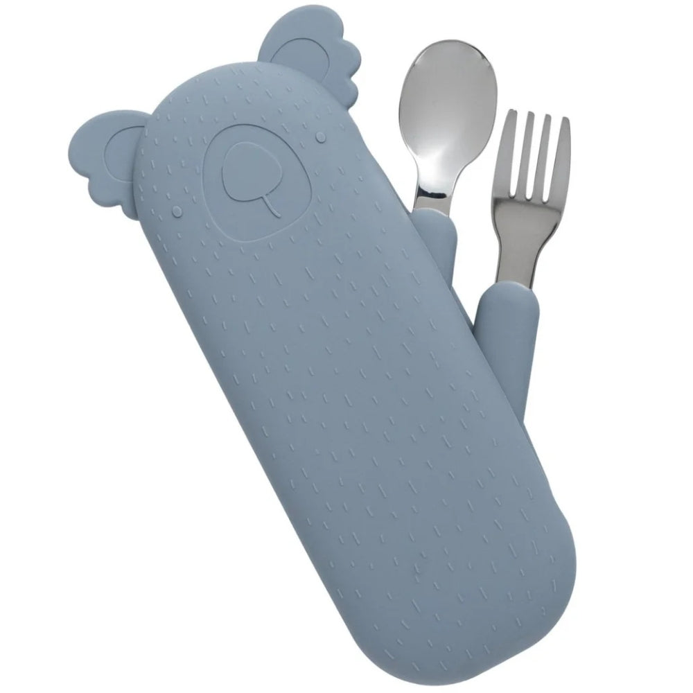 The Cotton Cloud Les couverts pour enfants dans l'étui Zoe the Koala en Storm Grey