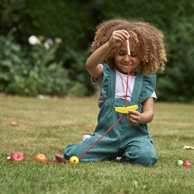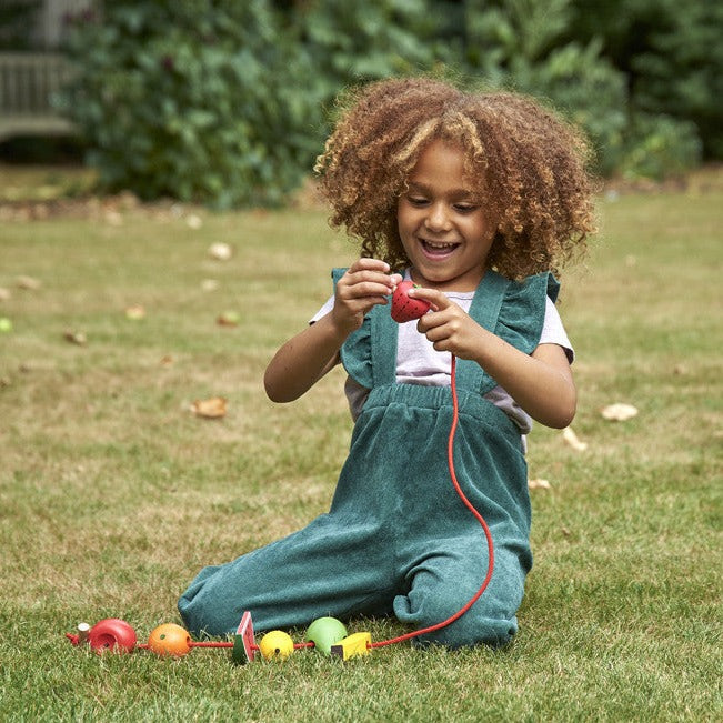 Enfile-fruits coloré en bois de hêtre avec des détails peints à la main de TickiT.