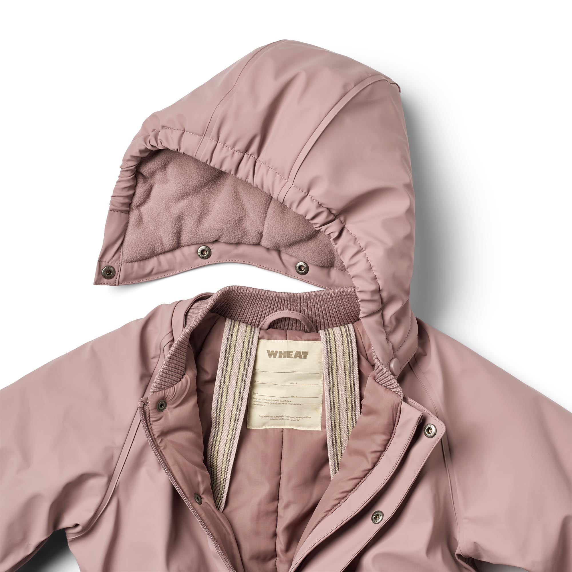 La combinaison d'hiver Wheat est également un choix conscient : fabriquée en polyester recyclé, sans PFC ni fluor, elle est certifiée Oeko-Tex, ce qui confirme son innocuité pour la peau des enfants.