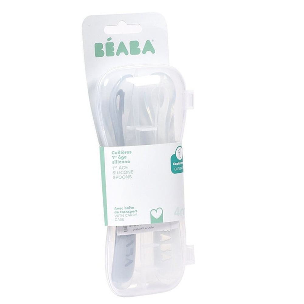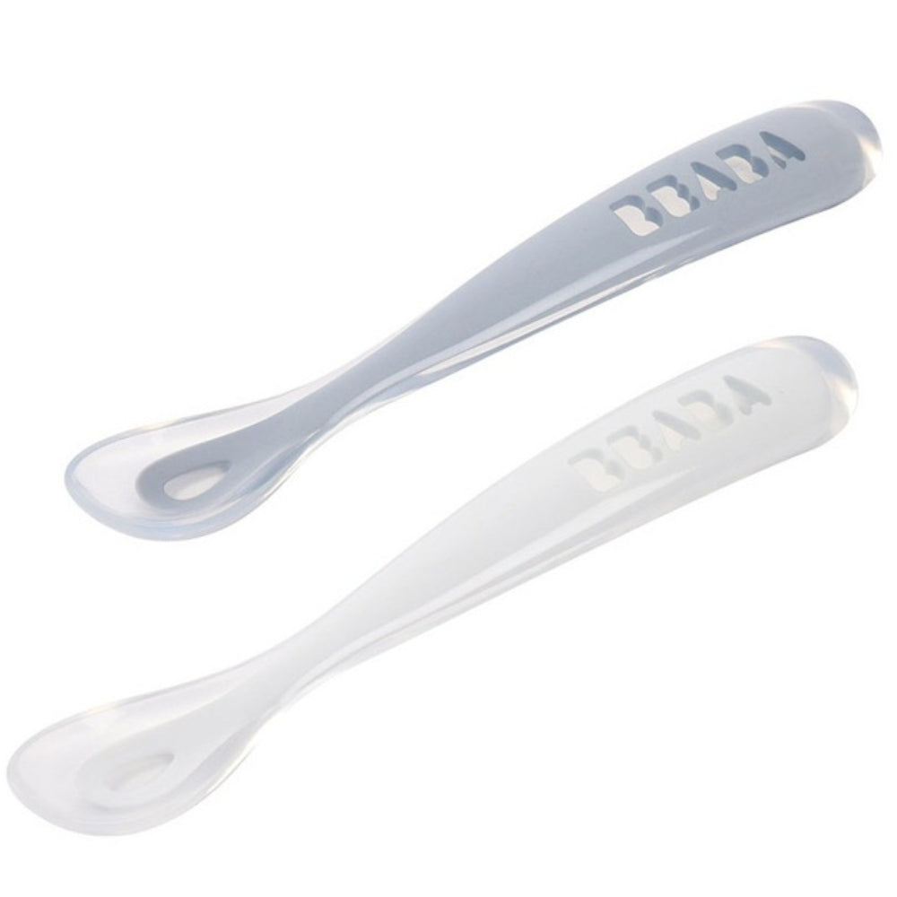 Beaba Set de 2 cuillères en silicone dans un étui de voyage Pebble / Cloud blue