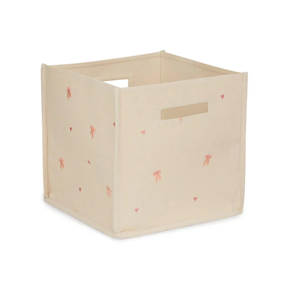 Le bac à jouets est décoré d'un délicat motif Bows, qui ajoute une touche subtile et romantique à l'intérieur.