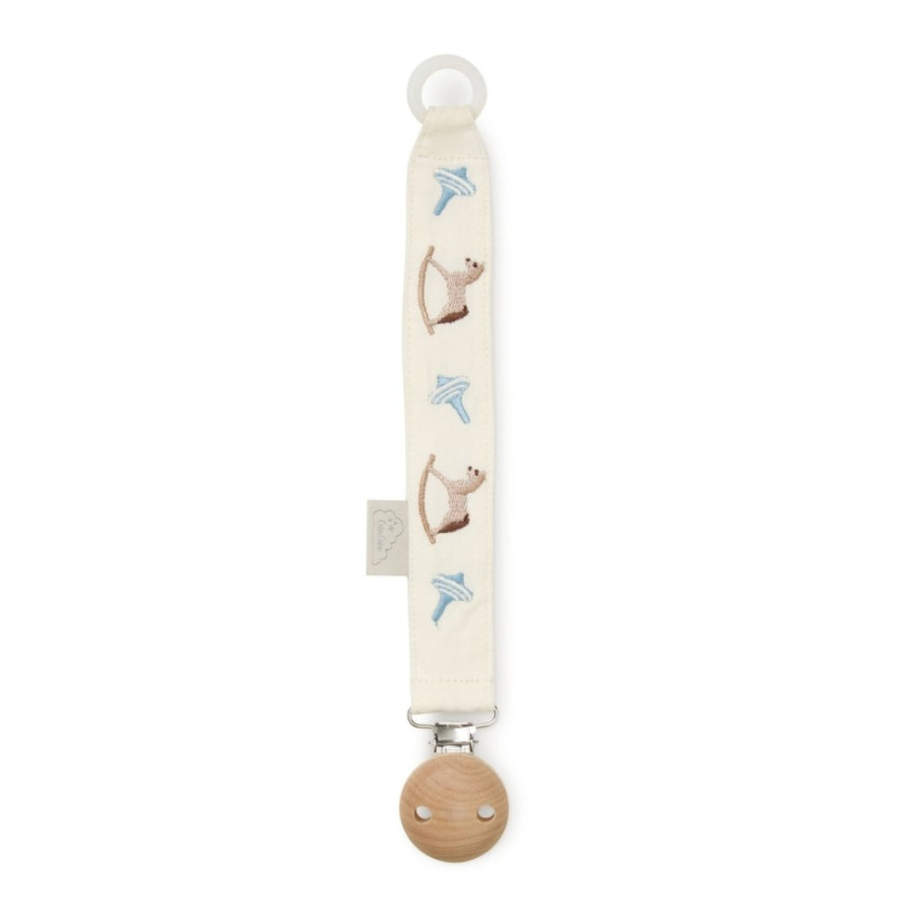 Le pendentif pour tétine de Cam Copenhagen s'attache facilement aux vêtements de bébé à l'aide d'un clip sécurisé, garantissant que la tétine reste propre et près de bébé, prête à l'emploi.