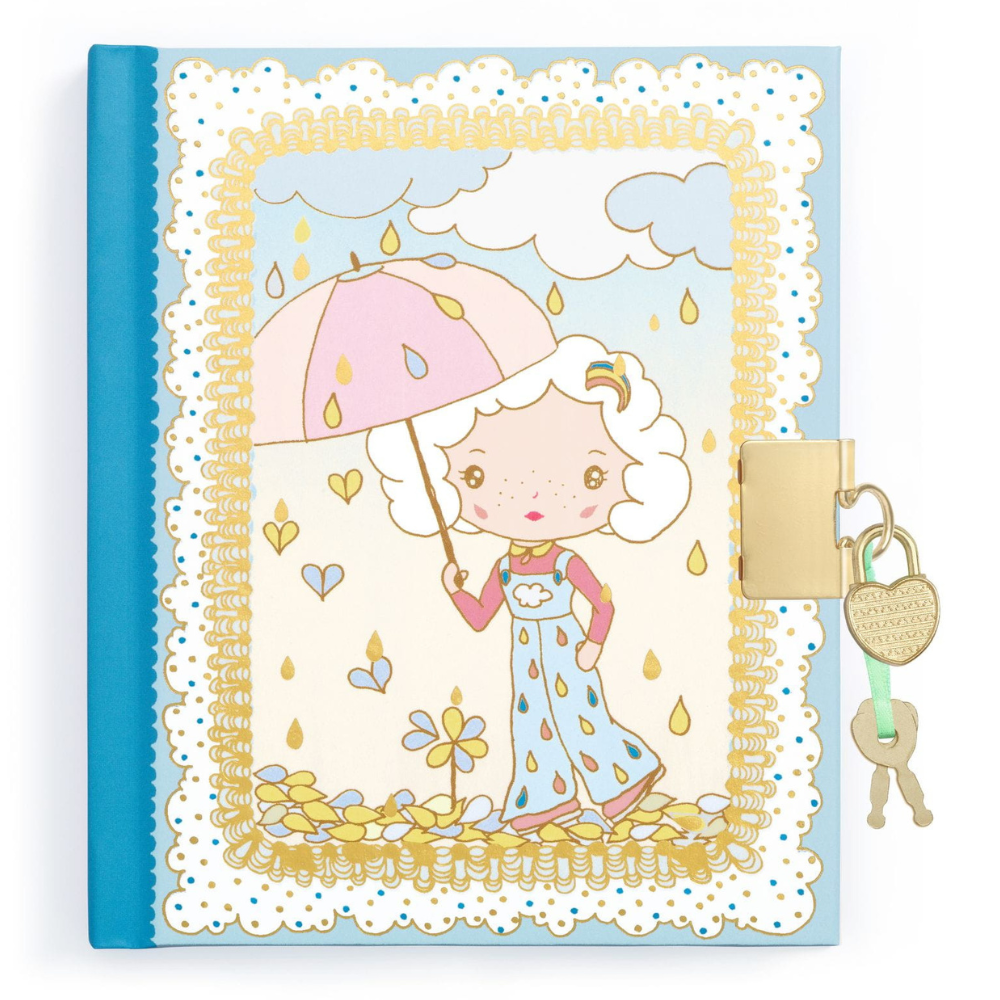 L'agenda secret Tinyly Prunelle de Djeco, orné de décorations dorées et d'un cadenas en forme de cœur, est un charmant compagnon pour les notes quotidiennes.