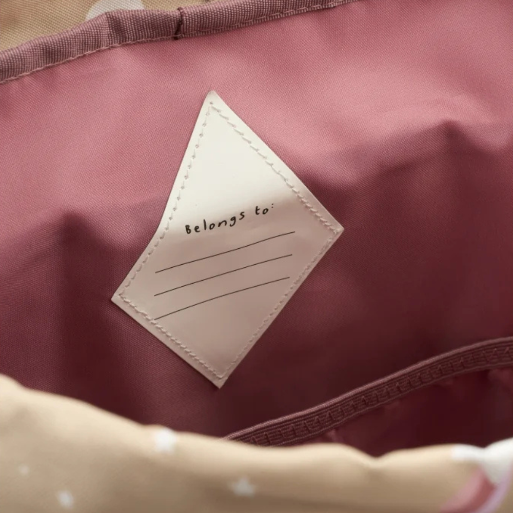 À l'intérieur, vous trouverez deux compartiments pratiques pour les petits trésors et un écusson nominatif en forme de losange - plus de confusion au vestiaire.