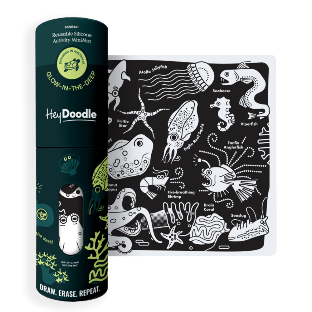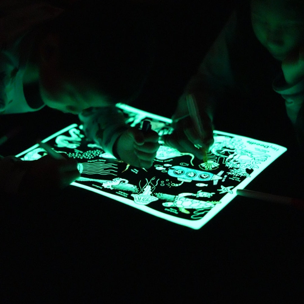 HeyDoodle Tapis de coloriage en silicone grand format A4 phosphorescent - Profondeurs de la mer