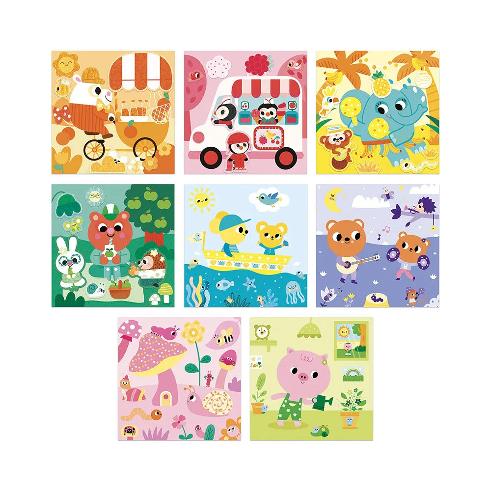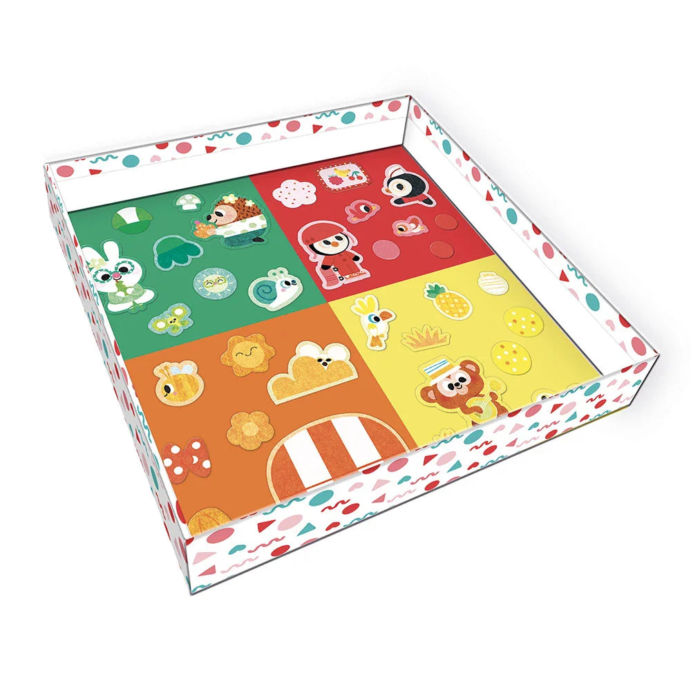 Avec ce set créatif Janod, les tout-petits peuvent décorer quatre images à l'aide des mosaïques rondes en mousse, créant ainsi des illustrations saisissantes et colorées.