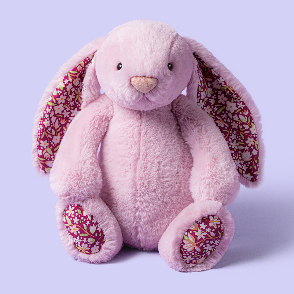 La peluche Blushkin Blossom Luxe Bunny de Jellycat est un adorable lapin lilas aux oreilles fleuries qui encourage instantanément la proximité.