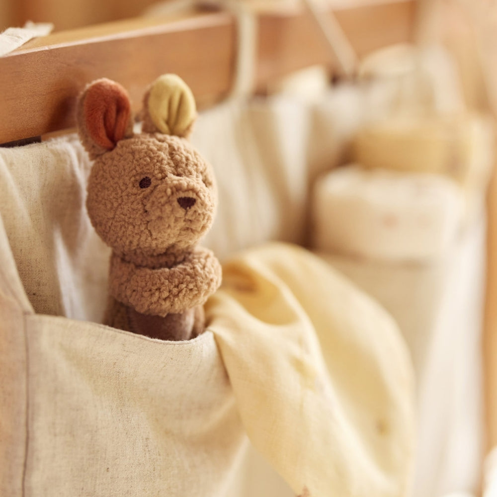 Le hochet de Jollein avec le motif d'un petit kangourou est un adorable compagnon pour les jeux et les câlins de tous les jours.