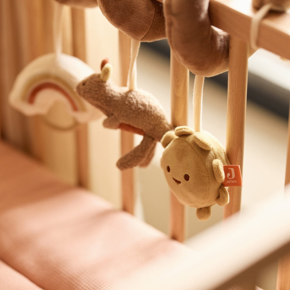 La marque Jollein a veillé à ce que le jouet ne soit pas seulement beau, mais qu'il favorise également le développement de l'enfant dès les premiers mois de sa vie.