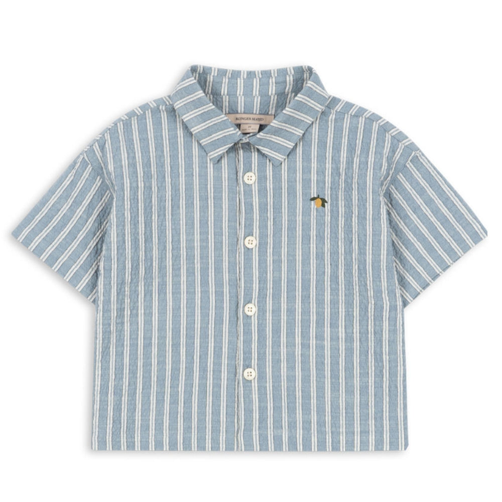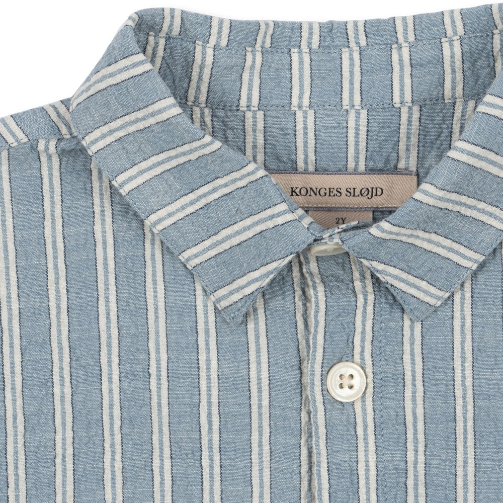Ce modèle de Konges Slojd a été fabriqué en coton biologique léger et respirant, avec une fine structure en seersucker qui assure la respirabilité même par temps très chaud. La chemise à manches courtes est donc confortable, douce au toucher et idéale pour les activités de vacances, les promenades ou les sorties en famille.