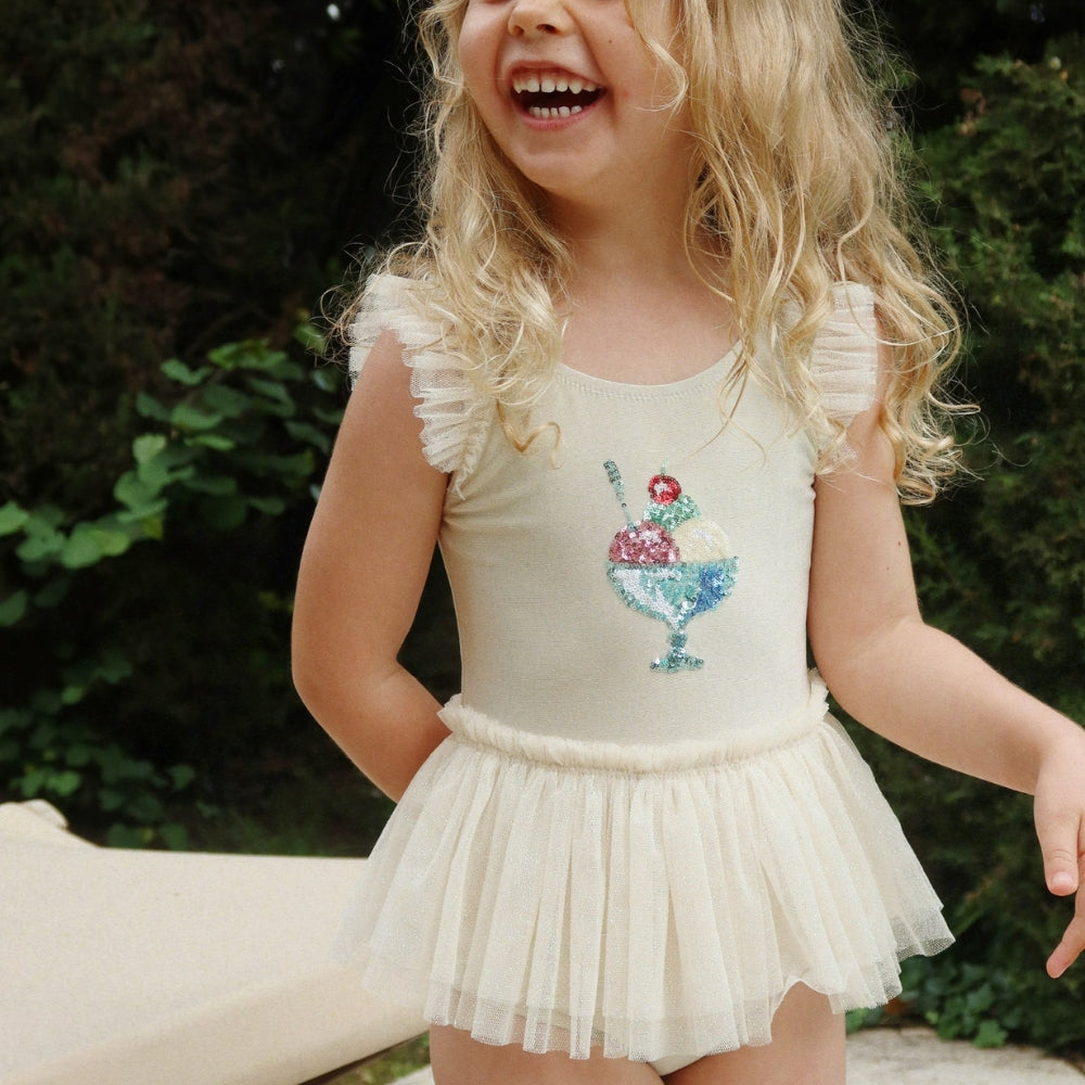 Ce modèle girly Konges Slojd est fabriqué dans un tissu légèrement chatoyant avec de subtils détails en tulle pour une sensation girly unique.