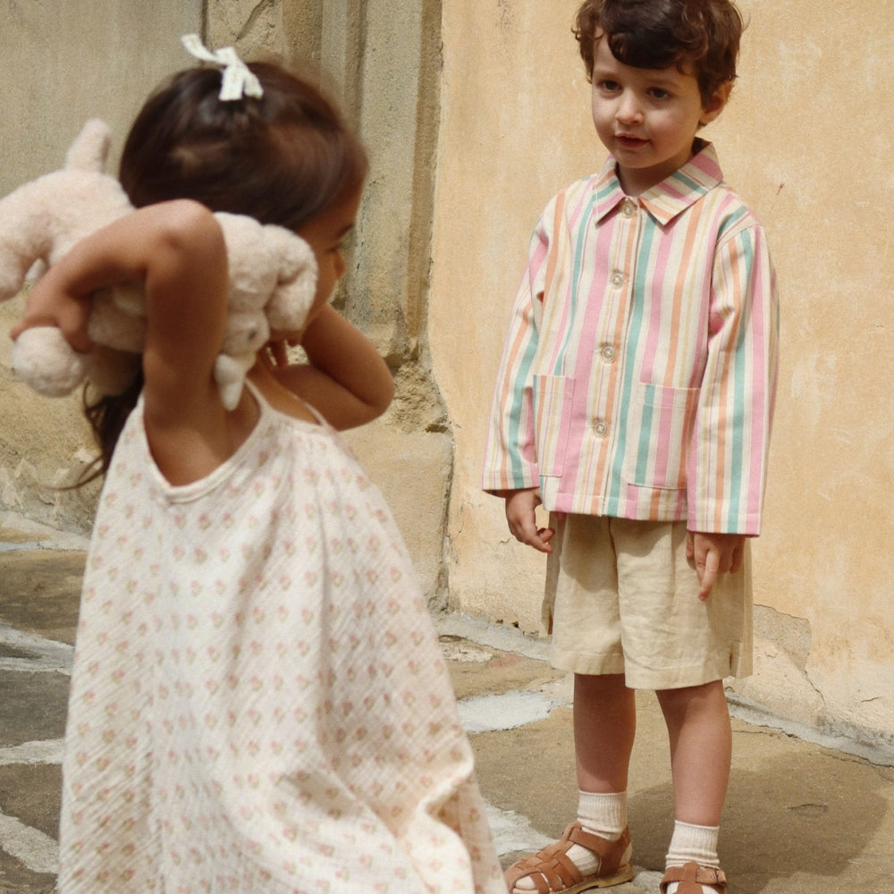 Le design minimaliste de la robe pour fille permet de l'assortir facilement à des accessoires d'été.