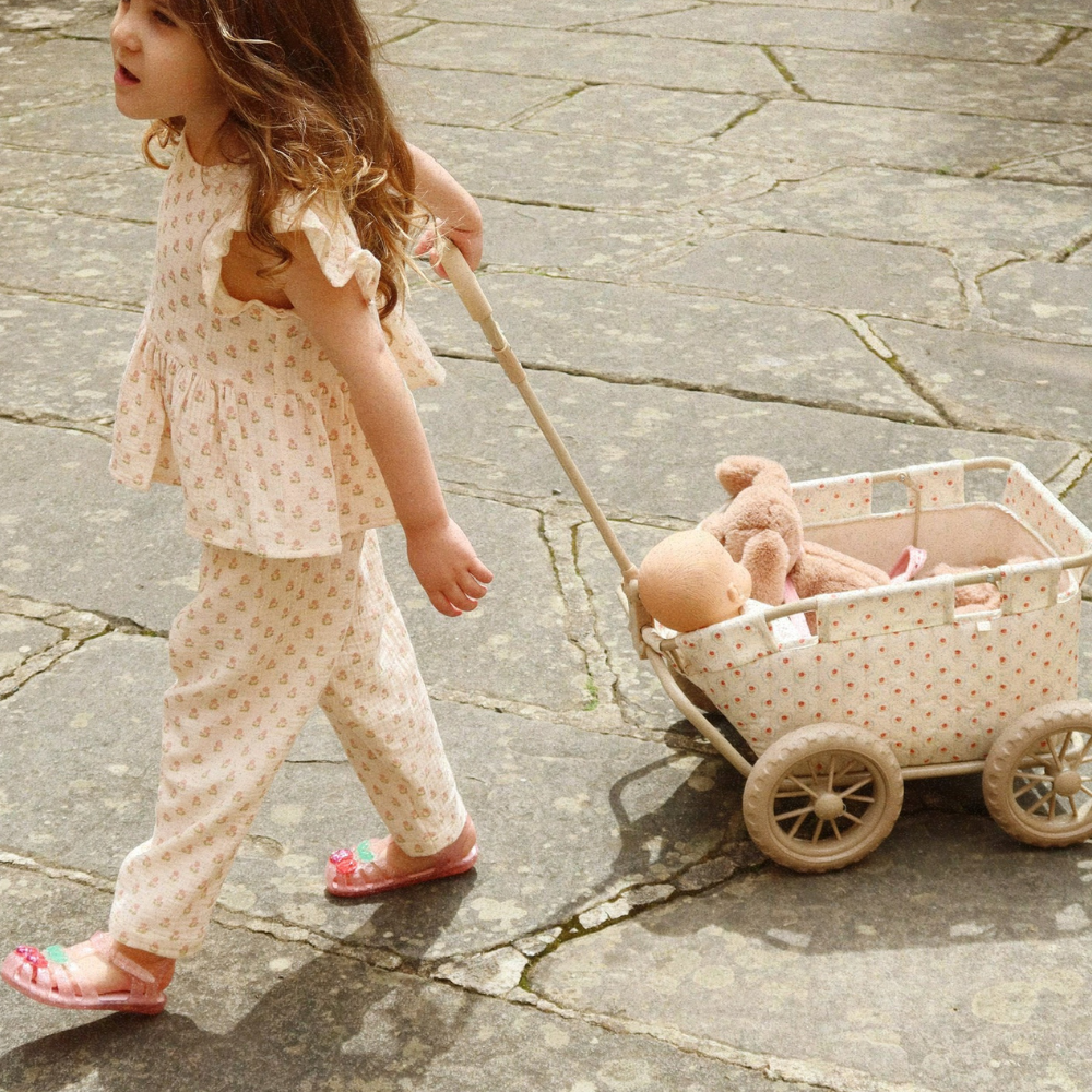 Le Konges Slojd Doll Wagon est un chariot de jeu magnifiquement détaillé qui permettra à votre enfant d'emmener tous ses ours en peluche, poupées et peluches préférés en promenade dans la maison ou sur la terrasse.