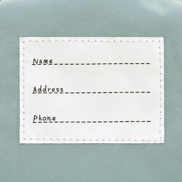 Une étiquette très pratique avec une carte de visite permet d'y inscrire le nom de l'enfant et le numéro de contact des parents