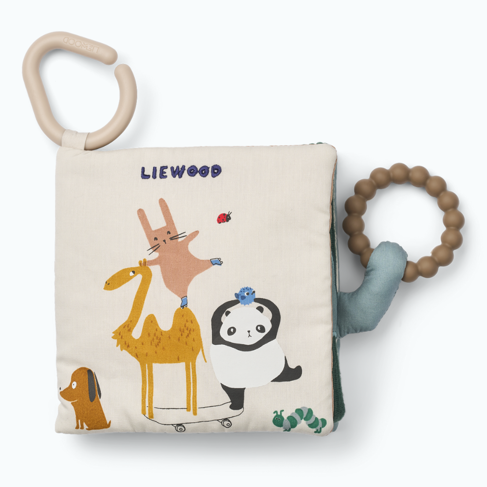 Le livre sensoriel doux de Liewood enveloppe le petit avec des textures pelucheuses et d'adorables animaux.