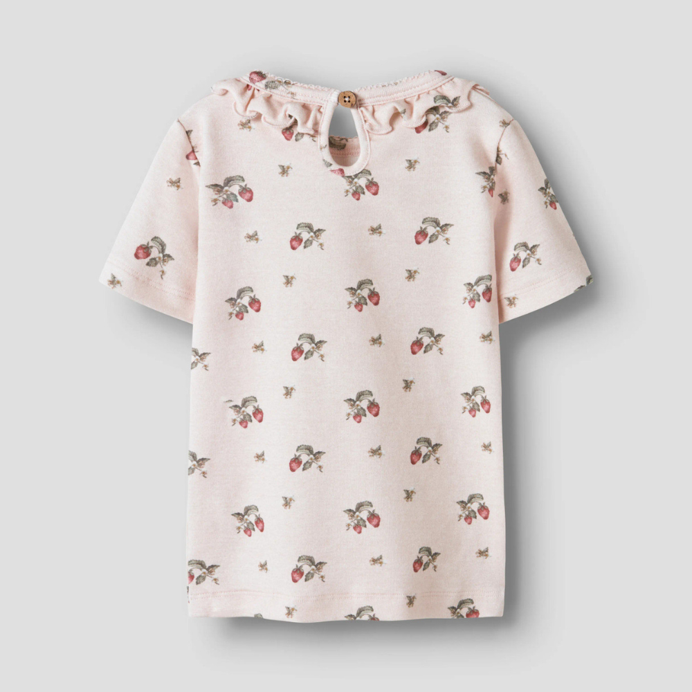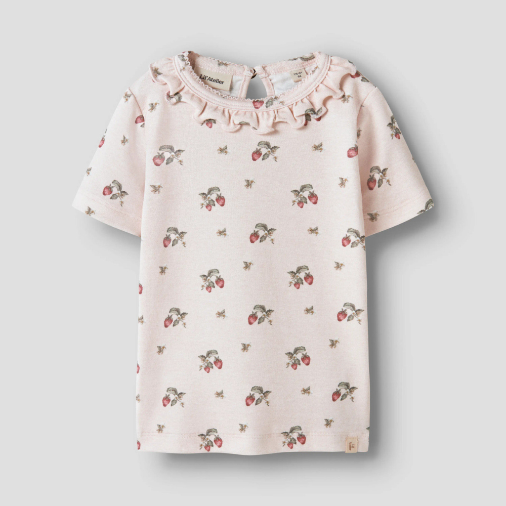 Lil' Atelier Kurzarm-T-Shirt mit Zierkragen Morganite Strawberry NMFGAYO