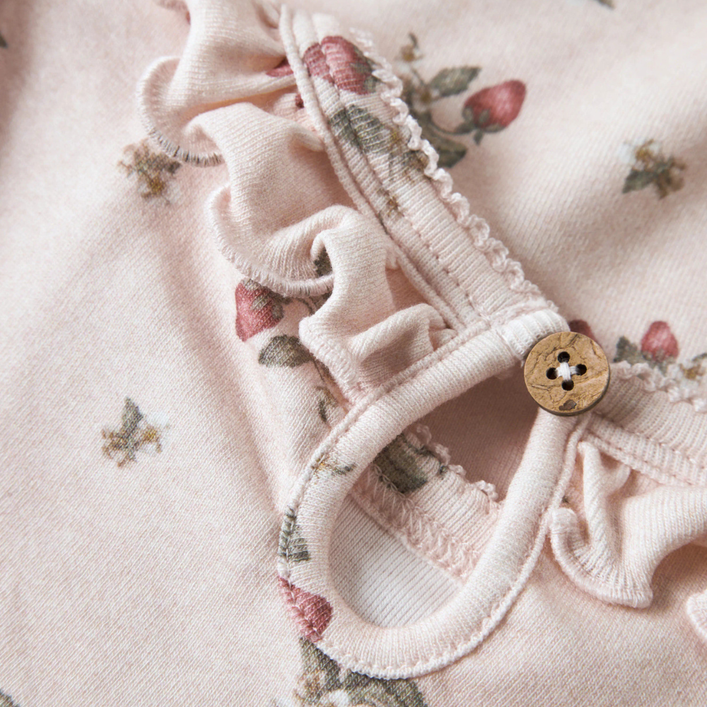 Le T-shirt de Lil' Atelier est doté de jolis volants, d'un imprimé allover et d'un col décoratif avec une patte de boutonnage, ce qui le rend facilement charmant et girly.