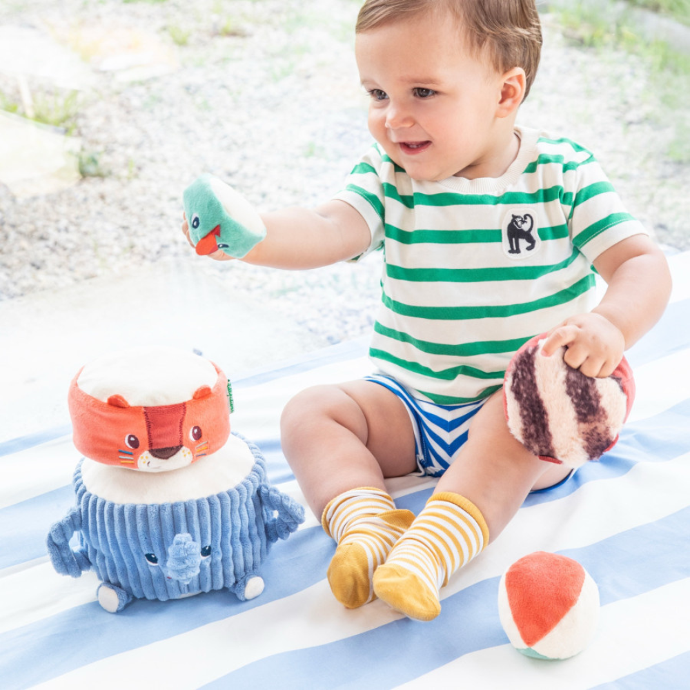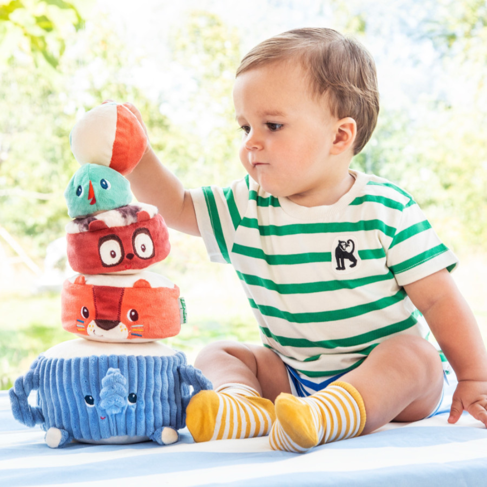 La pyramide sonore avec animaux doux de Lilliputiens est un jouet qui entraîne les tout-petits dans le monde des acrobates à partir de 12 mois.