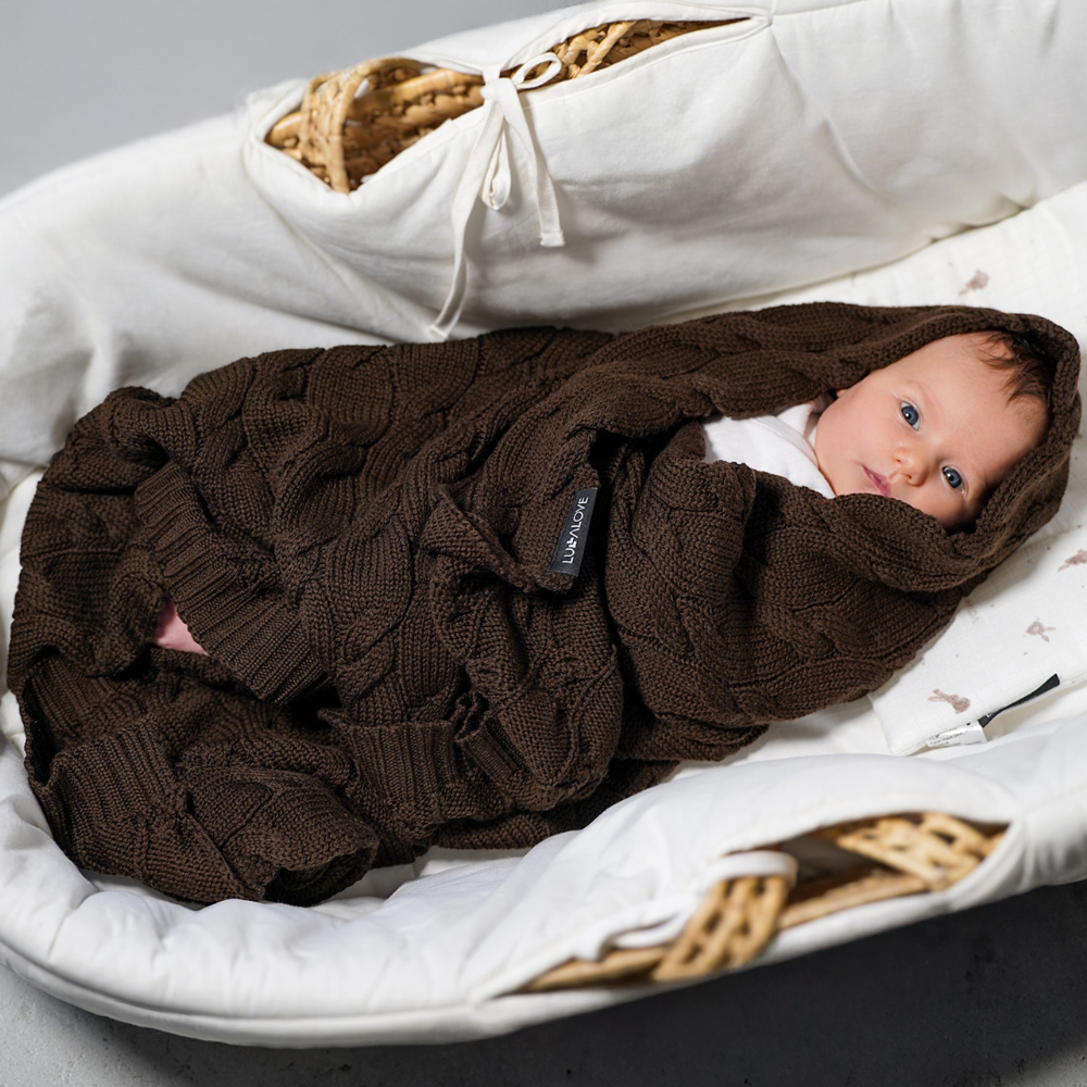 Lullalove Couverture en laine mérinos 80x100 cm Chocolat