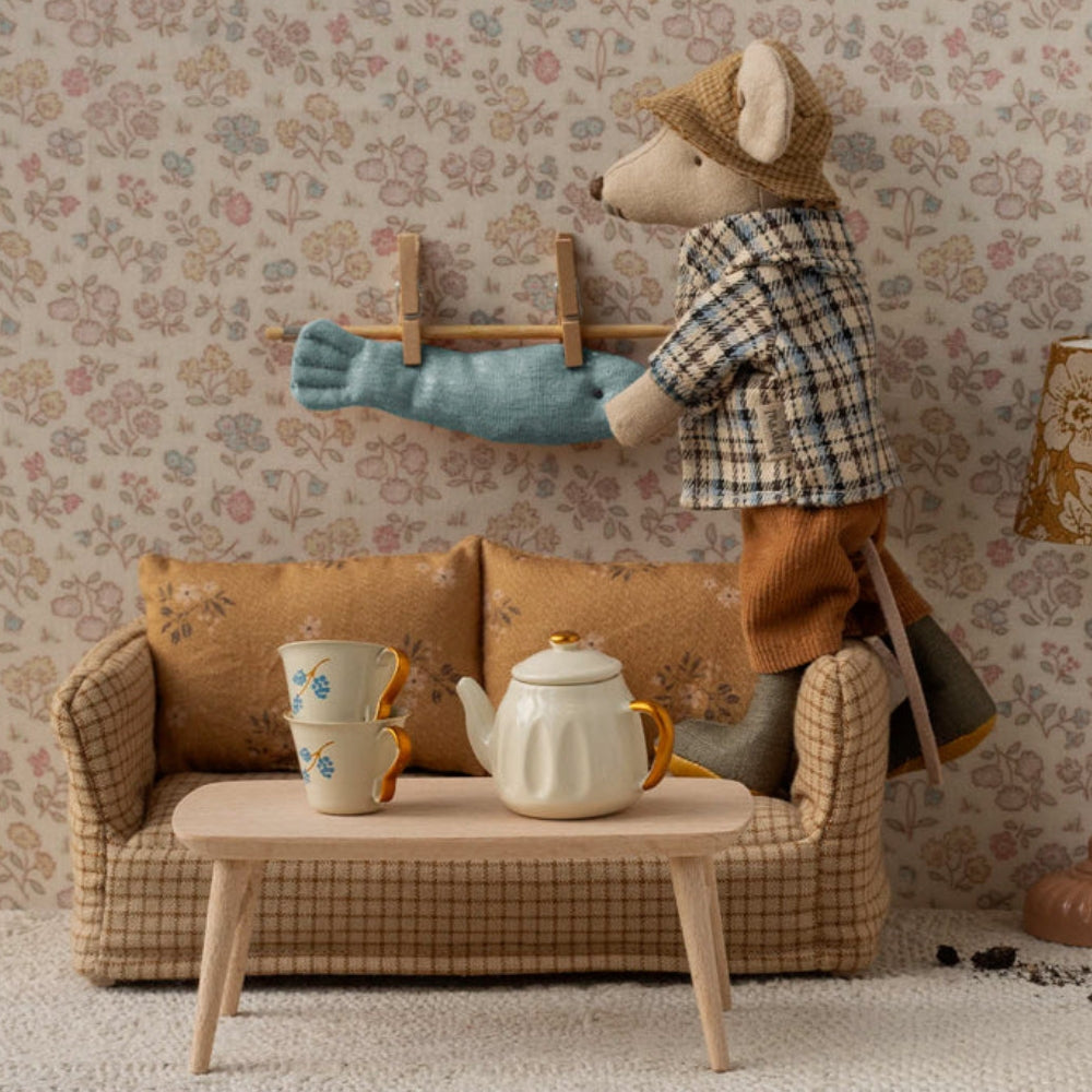 Le canapé miniature de Maileg est un accessoire adorable qui apportera une atmosphère chaleureuse au monde des souris et autres figurines.