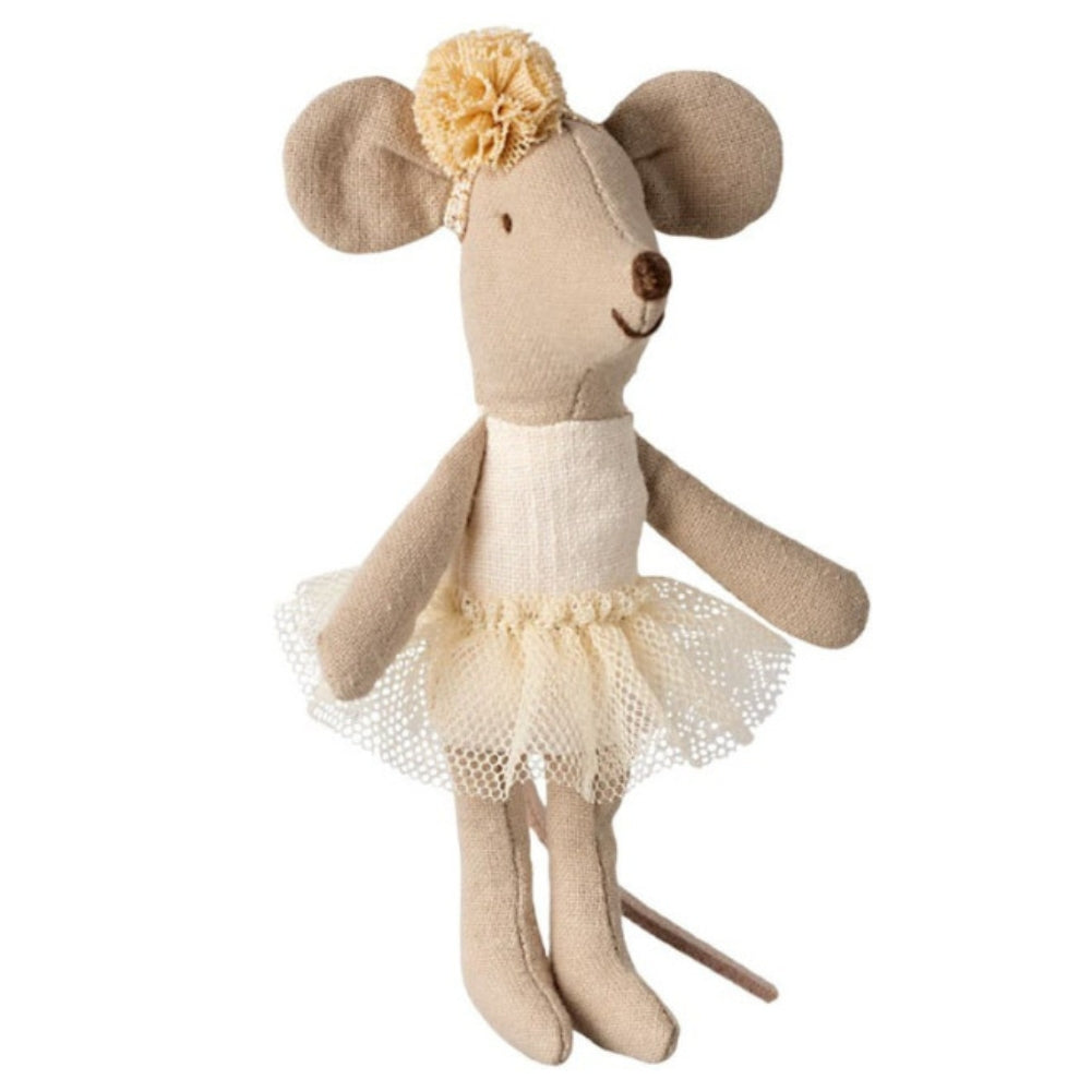 Une adorable petite sœur de la souris Maileg qui adore danser et jouer à la ballerine.