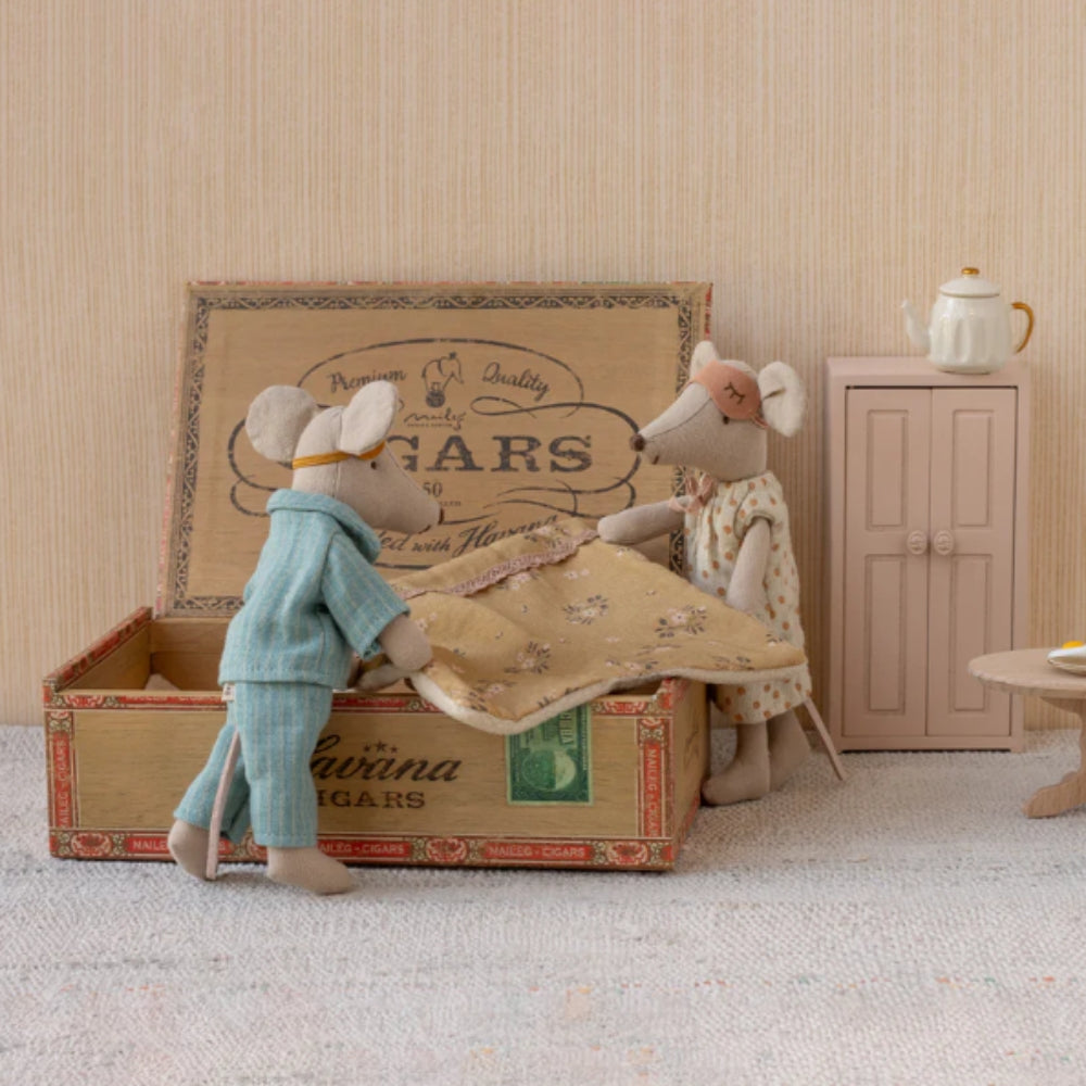 L'élégante boîte à cigares fait office de lit où les souris peuvent se reposer tranquillement après une journée d'aventures.