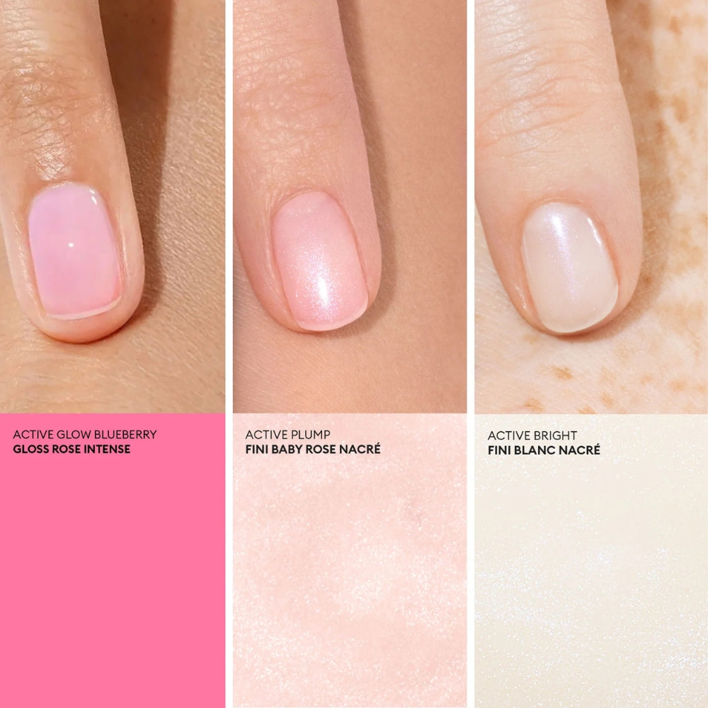 Le coffret comprend le vernis Active™ Glow Blueberry, qui offre une brillance miroir et contient 77,5 % d'ingrédients d'origine naturelle.