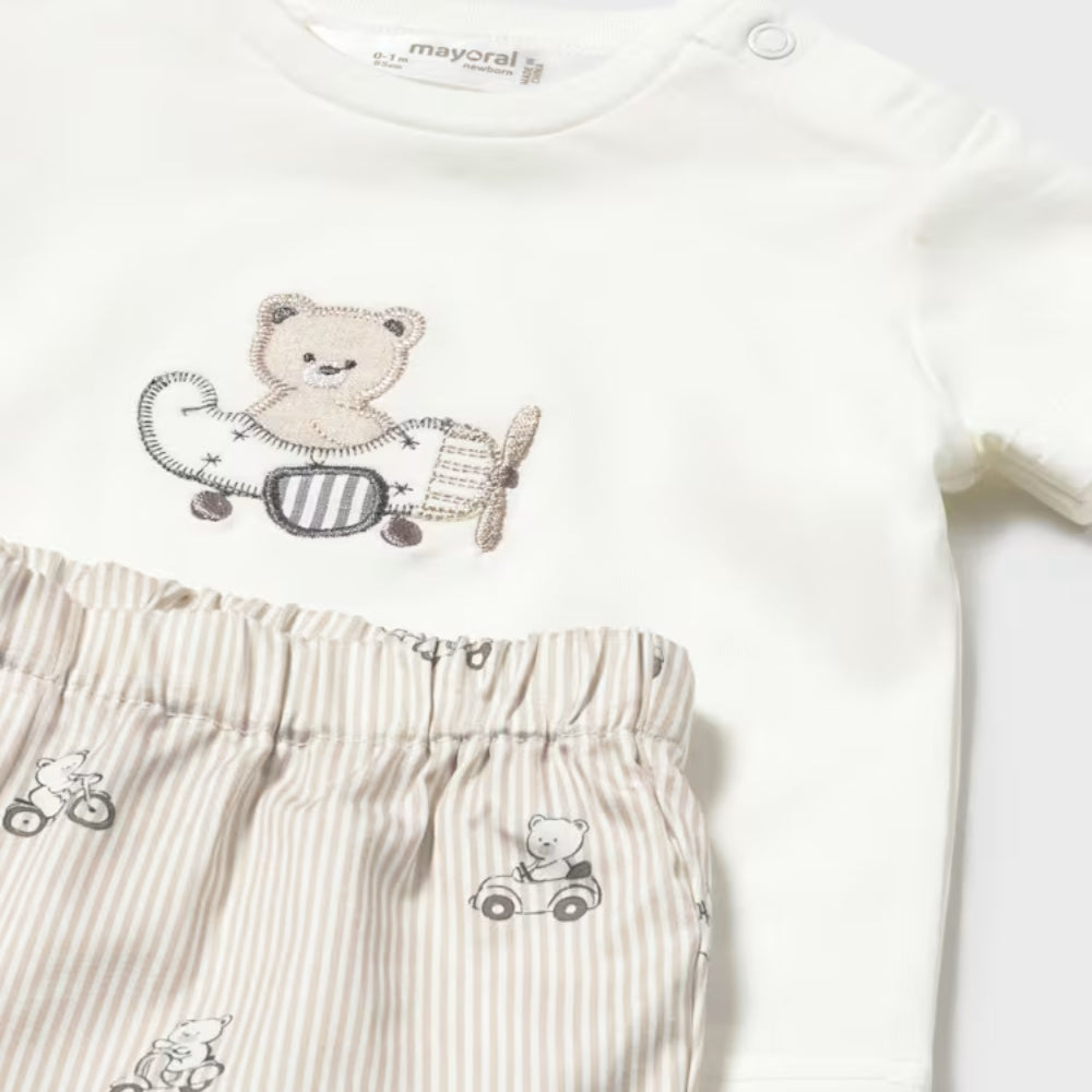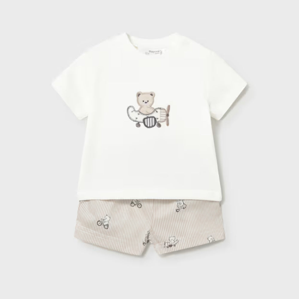 Mayoral Ensemble 2 pièces bébé avec chemise et short pour garçon Bear Topo