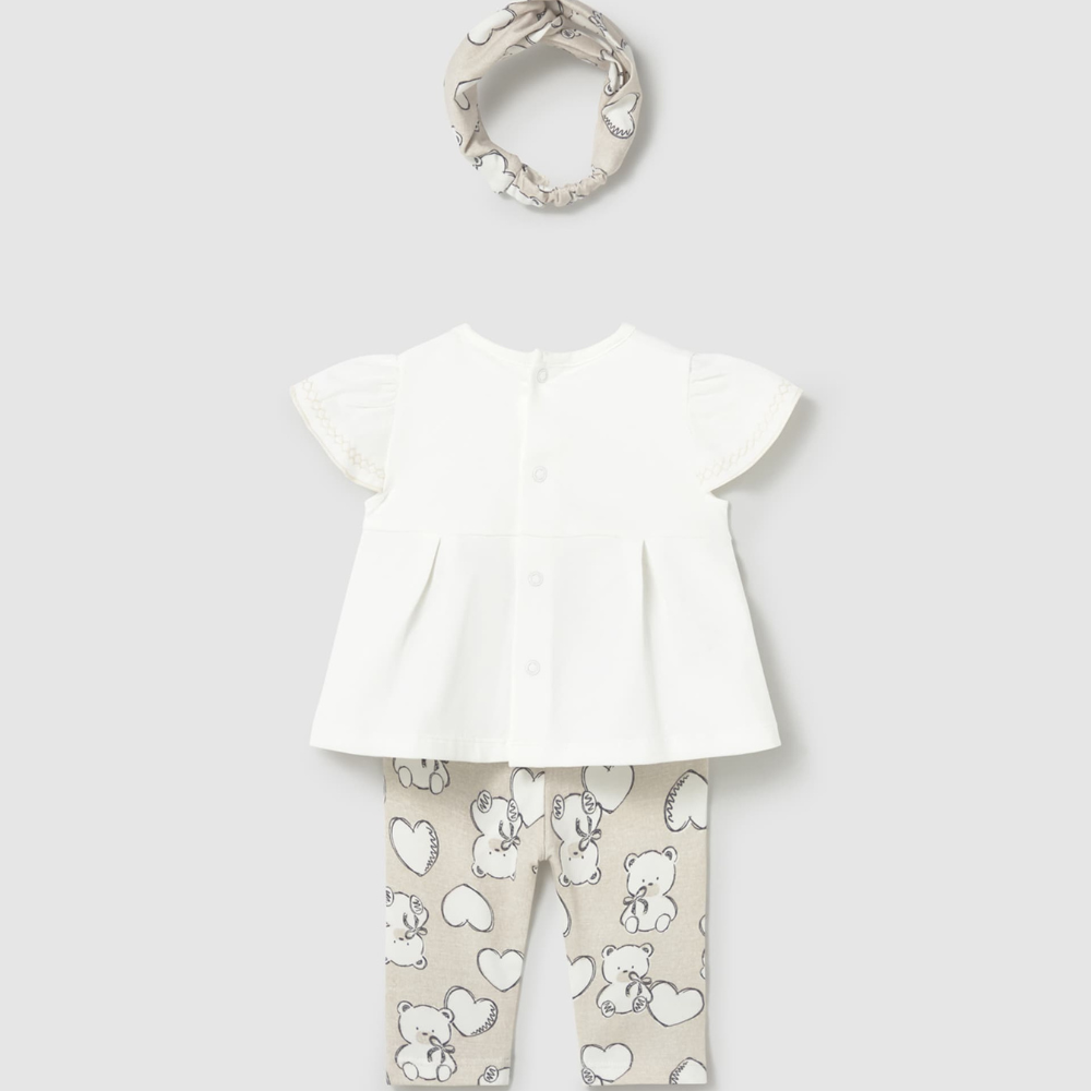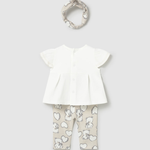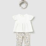 Cet ensemble pour bébé fille comprend un T-shirt à manches courtes, un legging confortable et un brassard pour la liberté de mouvement et le confort.