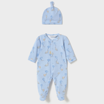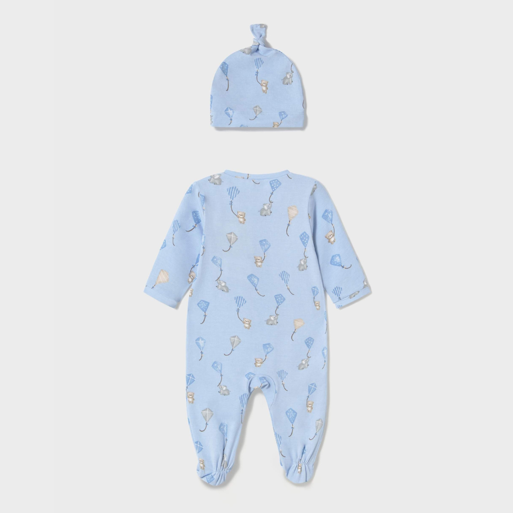 D'un bleu délicat, le pyjama Mayoral est à la fois mignon et pratique, grâce à son bonnet qui protège la tête du bébé du froid.