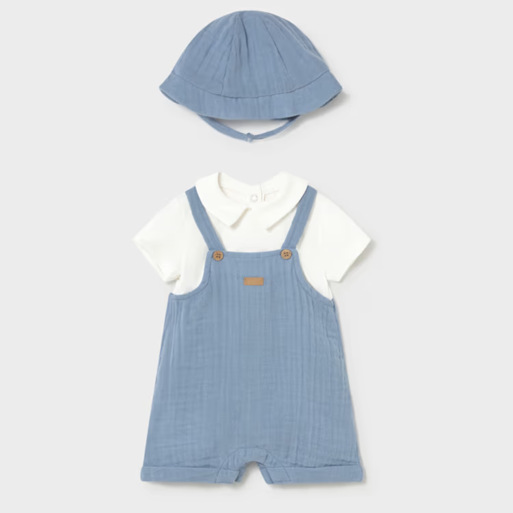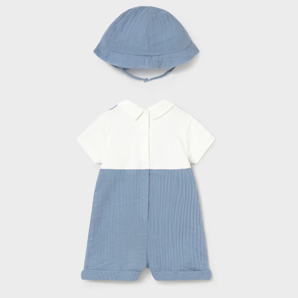 Mayoral Sac de couchage avec fausse salopette et bonnet pour nouveau-né Bleu
